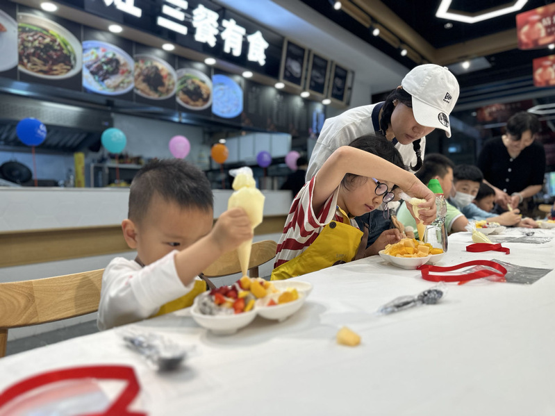 活動當(dāng)天,周邊社區(qū)受邀的8組家庭來到現(xiàn)場?;顒庸灿腥齻€環(huán)節(jié)——制作烘焙餅干、制作水果沙拉、享用自制美味。酒店的西點制作師給小朋友們詳細(xì)講解了制作餅干所需要的材料和制作方法,并進行現(xiàn)場規(guī)范。小朋友們聚精會神地觀察、學(xué)習(xí)、互相交流,認(rèn)真投入自己動手的快樂中。小朋友們最喜愛的環(huán)節(jié)是制作水果沙拉,大家認(rèn)真挑選了自己喜愛的水果,擠上美味的沙拉,吃上一口真是滿滿的幸福。大家邊吃沙拉邊聽老師講解健康飲食知識,還不時提出問題,現(xiàn)場氣氛十分熱烈。