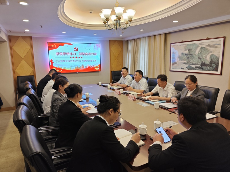 根據(jù)公司黨委主題教育工作安排,7月10日,公司黨委書記、董事長朱承宇以“感悟思想偉力 凝聚奮進(jìn)力量 以主題教育成效推動中山大廈高質(zhì)量發(fā)展”為題,為賓館黨支部全體黨員、積極分子及職工骨干講專題黨課。他強(qiáng)調(diào),要時刻胸懷“國之大者”,不斷提高推動高質(zhì)量發(fā)展本領(lǐng)、服務(wù)群眾本領(lǐng)、防范化解風(fēng)險本領(lǐng),推動中山高質(zhì)量發(fā)展取得新成效、實(shí)現(xiàn)新跨越。集團(tuán)公司主題教育第六指導(dǎo)組組長倪志愿參加旁聽。