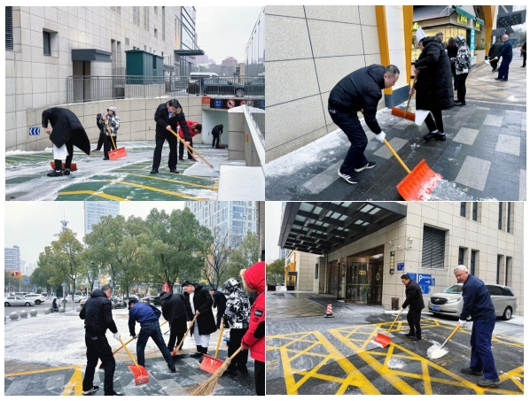 2月21日至22日,南京市氣象臺連續(xù)發(fā)布道路結(jié)冰橙色預(yù)警信號,農(nóng)歷龍年的第一場雪,在銀裝素裹的同時(shí),也給市民朋友的出行帶來了困難。為有效應(yīng)對雪情,為賓客和市民朋友保障良好的出行環(huán)境,中山大廈建鄴分公司黨支部全體黨員同志以雪為令、沖鋒在前,冒嚴(yán)寒、戰(zhàn)冰雪,充分發(fā)揮黨支部戰(zhàn)斗堡壘作用和黨員先鋒模范作用,積極開展掃雪除冰工作。
