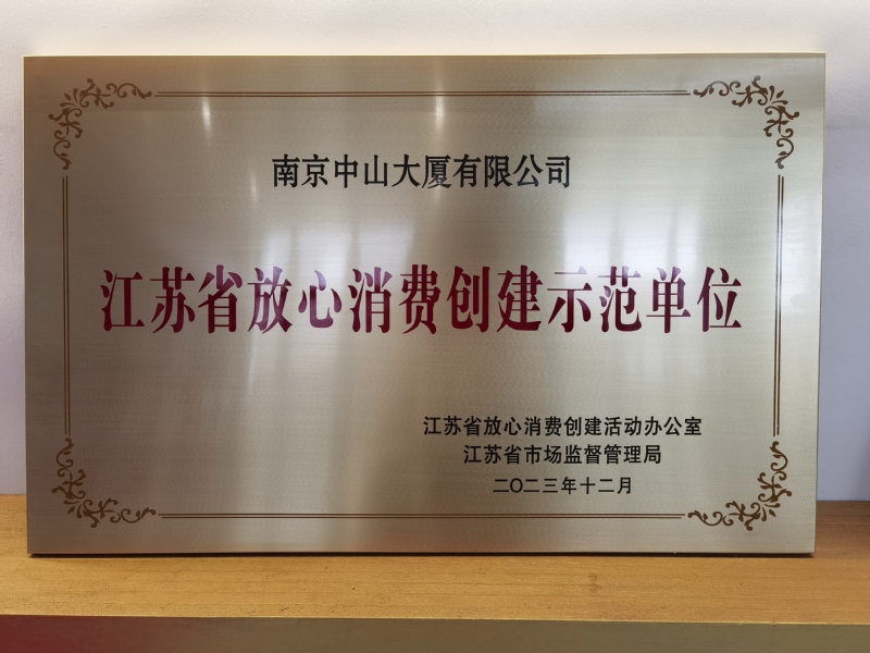 喜報:南京中山大廈榮獲2023年度江蘇省放心消費創(chuàng)建示范單位