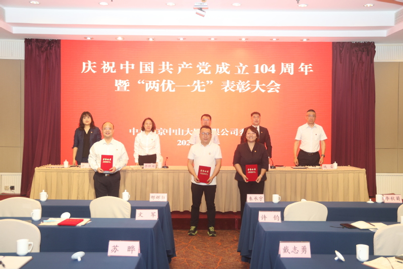 為慶祝中國共產(chǎn)黨成立104周年,南京中山大廈于7月7日下午14:30在本部賓館四樓友誼廳召開“兩優(yōu)一先”表彰大會暨專題黨課。黨委副書記、總經(jīng)理邢輝紅宣讀表彰決定并主持會議,班子成員為先進集體及個人頒獎。朱承宇作專題黨課分享,全體觀看黨員教育視頻《風范》。中層助理級及以上管理人員、黨支部書記、受表彰人員在場認真學習聆聽,傳承紅色精神,凝聚奮進力量。
