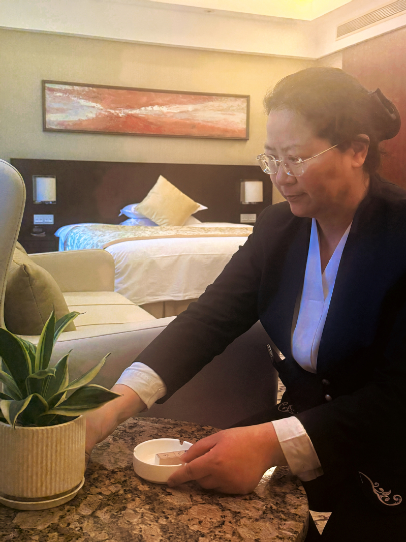 謝黎英今年 50 歲,現(xiàn)任中山大廈房務(wù)部樓層主管。自 2010 年入職以來,她已堅(jiān)守崗位 16 年,始終愛崗敬業(yè)、踏實(shí)勤懇,曾榮獲 “江蘇農(nóng)墾巾幗建功標(biāo)兵” 稱號,并帶領(lǐng)班組獲評公司內(nèi)部先進(jìn)班組。